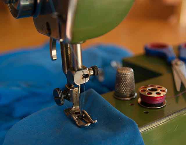 Penjahitan helai kain dengan menggunakan metode sterika untuk kerapihan jahitan.